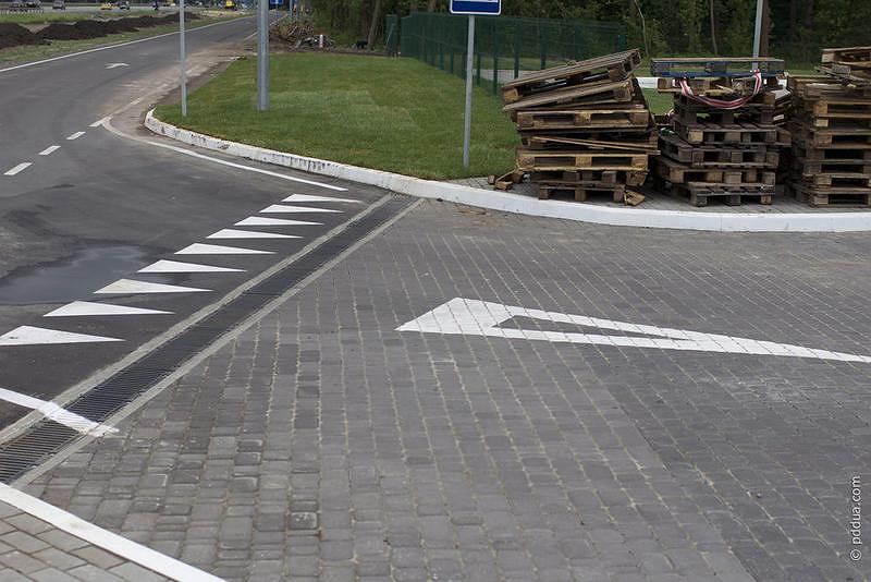 1.13 Разметка в виде прилегающих друг к другу треугольников , направленных вершинами в сторону приближающегося транспорта — указывает место, где водитель при необходимости должен остановиться, уступая дорогу транспортным средствам, движущимся по пересекаемой дороге.