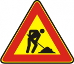 1.23 «Дорожные работы». Чаще всего выполняется на желтом фоне (временный знак, имеющий преимущество перед постоянным).