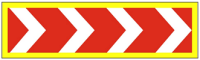 Указывает направление движения на закруглении дороги малого радиуса с ограниченной видимостью. Направление объезда ремонтируемого участка дороги. (направо)
