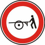 3.12 «Движение пешеходов с товарными тележками запрещено». Действует до первого перекрёстка.
