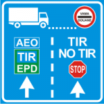 5.37.4 «Направление движения по полосам» и варианты этого знака располагаются на расстоянии 50 – 150 м от въезда на пункты пересечения государственной границы и определяют разрешённые направления движения для грузовых автомобилей и составов транспортных средств, которые принадлежат авторизованным экономическим операторам (AEO) или перевозят грузы, сопровождаемые предварительной декларацией в электронном виде TIR–EPD, соответственно грузы, сопровождаемые книжкой МДП или у которых она отсутствует.