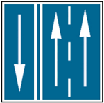 Указывают движение по полосам на трехполосной дороге, когда движение организовано по принципу 1+2 или 2+1.