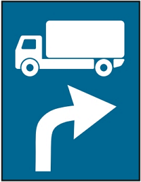 5.72.2 «Рекомендуемое направление движения грузовым автомобилям направо» — рекомендует направление движения для грузовых автомобилей и самоходных машин, если на перекрёстке их движение в одном из направлений запрещено.