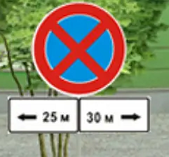 6.4.4 «Зона действия» — указывают направление и зону действия знаков 3.31 и 3.32.1 при запрещении остановки или стоянки вдоль фасада здания, стороны площади и т. п.