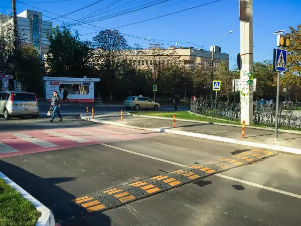 ♦ Издалека предупреждает водителя снизить скорость, и, соответственно — снизить опасность дорожно-транспортных происшествий для всех участников транспортного движения. Обычно устанавливают на участке дороги, в местах скопления людей: пешеходные переходы, дошкольные и школьные учреждения, места для отдыха и развлечения детей, лечебных заведений, парков, стадионов, вокзалов.