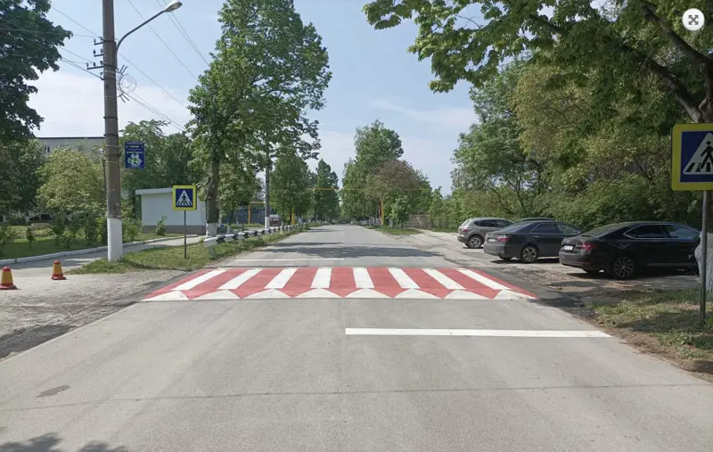 Сочетает в себе свойства лежачего полицейского и пешеходного перехода. Изготавливается из высокопрочной полимерно-песчаной смеси. На дорогах Молдовы уже повсеместно появились приподнятые пешеходные переходы, особенно вблизи школы, больниц и детсадов.