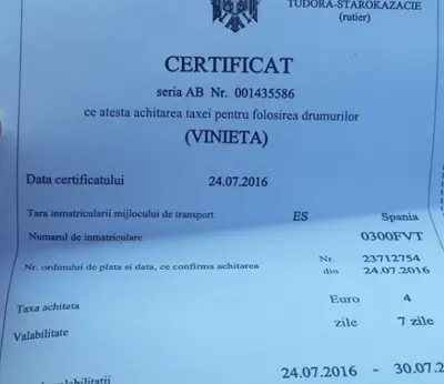 *Виньетка — это налог за пользование дорог Республике Молдова для автомобилей которые не зарегистрированы в Республике Молдова.