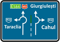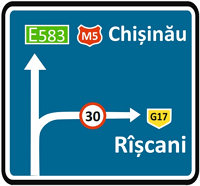 5.78.3 «Километровая тумба» — устанавливается на национальных дорогах регионального значения. На боковой стороне тумбы, обращённой к дороге, наносится эмблема, обозначающая категорию дороги. На лицевой стороне, на её полукруглой части наносится цифра, соответствующая количеству километров; На средней части – сверху вниз наносится название основного населённого пункта (города, муниципия или транспортного узла), расположенного по маршруту, и расстояние в километрах до центра этого населённого пункта, затем название ближайшего населённого пункта по этому маршруту и расстояние в километрах до его центра. Если ближайший населённый пункт является основным, то на тумбе указывается только его название и соответствующее расстояние. На участках дорог, проходящих по населённым пунктам, на тумбах, расположенных в пределах населённого пункта, наносится только его название.