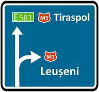 5.61.1 «Направление движения к населённым пунктам или другим объектам». Синий фон означает, что после выезда из данного населенного пункта движение к указанным на знаке населенным пунктам или объектам осуществляется по национальной дороге общего пользования.